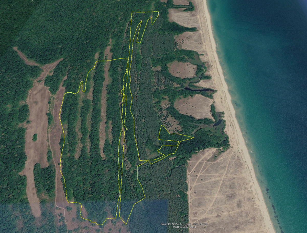 Така например поземлен имот 52115.502.6 е зает от гори и горски култури, част от които са облесени дюни. Имотът е покрит от смесица от следните местообитания от Директивата за местообитанията - 2180 Облесени дюни, 2190 Влажни понижения между дюните и 91F0 Крайречни смесени гори om Quercus robur, Ulmus laevis и Fraxinus excelsior или Fraxinus angustifolia покрай големи реки (Ulmenion minoris), които са картирани в публикация (Цонев и др. 2011).