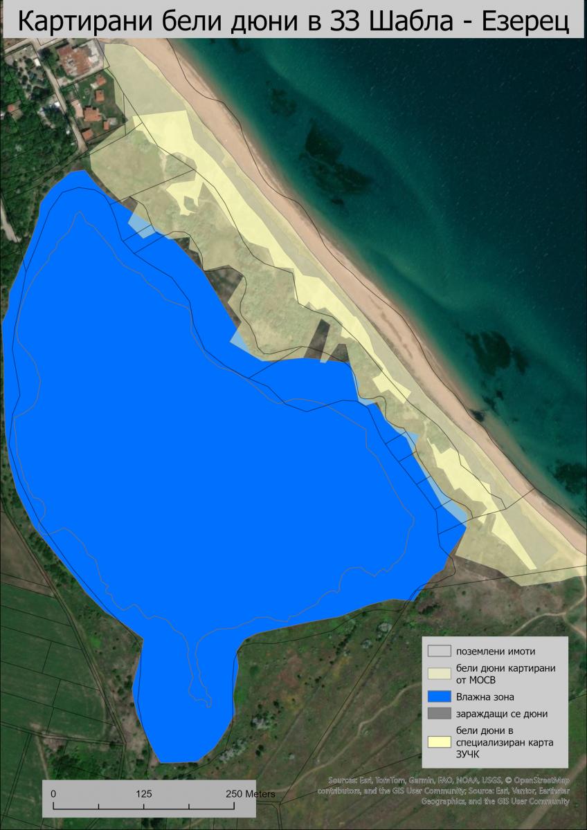На 11.01.2022 е приета специализирана карта по ЗУЧК на района, на която са отразени само 10 декара сиви дюни в същия имот. Повечето от констатираните от нас дюни са останали извън специализираната карта.